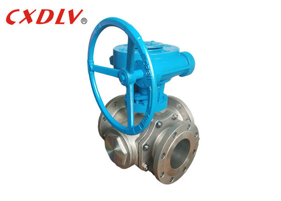 Worm Gear Three Way Stainless Steel Flanged Ball Valve